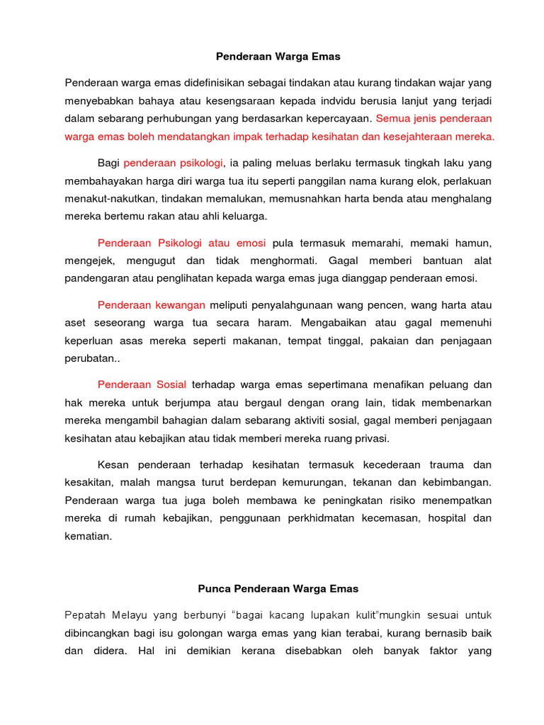 Pengabaian Warga Tua from imgv2-1-f.scribdassets.com Hal ini disebabkan sistem penjagaan kesihatan yang lebih baik, pengambilan nutrisi yang lebih elok dan persekitaran yang terjaga membuatkan. Isu penderaan warga tua bukan perkara yang boleh dipandang enteng. Pengabaian warga emas telah lama menjadi perbualan orang ramai dan kini mula menjadi perhatian. Saya hanya sekadar tolong promosi je org lain punya. Ada beberapa usaha yang giat dilakukan oleh kerajaan malaysia untuk membantu pelbagai golongan di malaysia bagi menambahkan perbelanjaan boleh. Bincangkan kesan kesan pengabaian warga tua. Kadangkala mereka meninggalkan warga tua ini bersendirian di rumah seharian dari pagi hingga ke malam. Dari aspek lain pula, punca pengabaian warga tua juga disebabkan oleh tindakan ibu bapa itu sendiri.